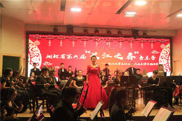 新闻中心讯(记者 李曼 望诗雨 涂文櫆 摄影 向慧)长江之春,余音绕梁。12月11日19:00,第六届“长江之春”音乐季—高雅艺术进校园之长江之声民族乐团专场演出在bat365登录平台入口402学术报告厅举行。本次演出由湖北省教育厅、湖北省文化厅主办,长江大学、bat365登录平台入口、武汉软件工程职业学院、武昌首义学院联合承办,旨在引领青年学生提高审美修养,为大学生的健康成长营造良好的文化环境。长江大学艺术学院院长刘波、党委书记周胜美、校团委副书记秦良斌等一行5人,bat365登录平台入口党委书记陈伟、学生工作部部长陈义文、校团委书记邱玉添等领导及300余名学生共同观看了本次演出。