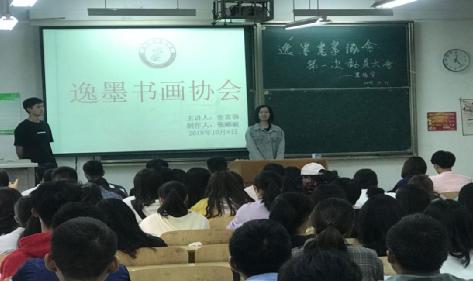 逸墨书画协会以书画闻名,由会长对协会特色活动以及相应书法课程进行介绍,再以PPT形式播放书画作品,展示协会的底蕴,由全员赏析。再由上一任会长进行讲话,讲解协会的相关事项。再由前任教学部部长进行讲话,讲述了书画之乐趣。创业者协会会长和英语俱乐部负责人分别进行了讲话,展现了协会之间友好的情谊。