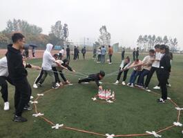 户外素质拓展活动分为两大节,将环境保护协会人员分为上午和下午两批,全过程都以游戏的方式进行。刚开始就是一项热身运动,看似简单的围着操场跑三圈,实则在考验团队之间的协调性。接下来便是雷区取水,教练说,链接加速,极速求生这几个游戏,每个游戏都离不开团结二字,一个集体只有团结协作才能够取得成功。哪怕是游戏,也会有有惩罚,看似很小的问题也肯能引起全队受罚。即便很累,但协会成员也都欣然接受,这就是环境保护协会成员的一个优良品质——负责任。