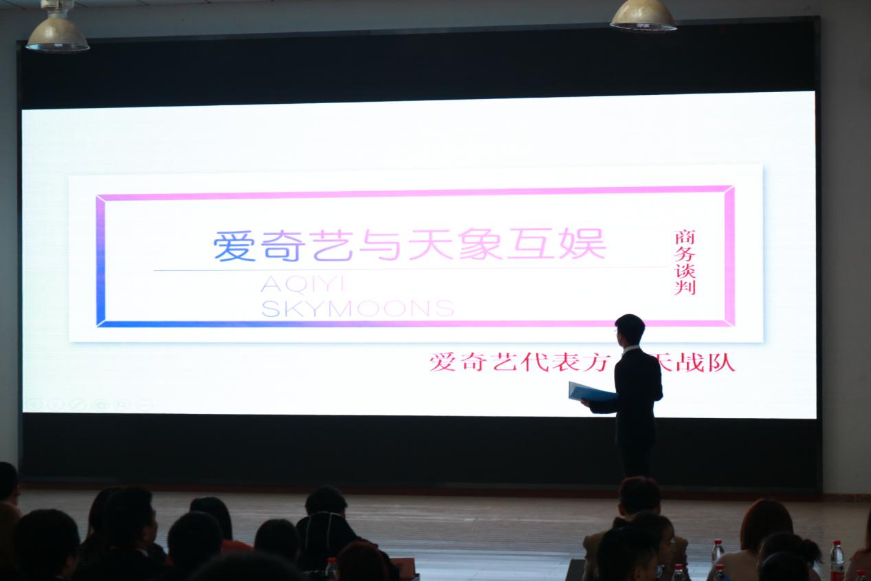 第一轮,有八个队伍成功晋级。进入第二轮最精彩的谈判部分。每个队伍由CEO,决策人,财务总监和法律顾问组成。每个职位分工明确,各就其职,八只队伍在谈判时为代表的公司争取最大化的权益。在开篇立论环节中便思路清晰、引经据典、字字珠玑,将各自深厚的谈判功底发挥的淋漓尽致,现场气氛迅速升温。