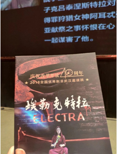 在经历过紧张而充实的训练后,社员在晚上七点前往中南剧院观赏话剧《埃勒克特拉》,这是社员接触专业话剧学习的机会,从中也体会了话剧艺术的魅力。