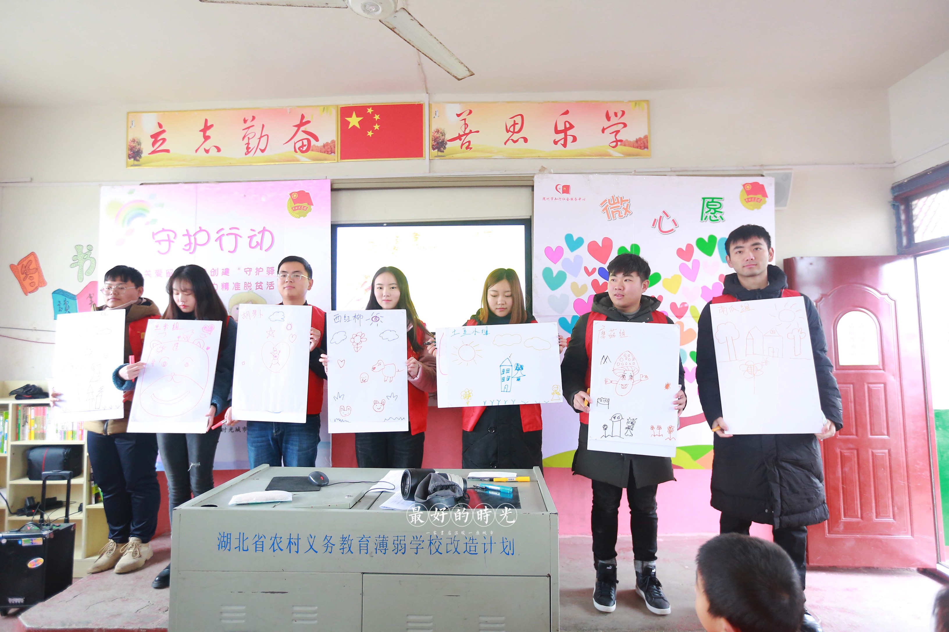 活动当天,随州迎来了2018年的第一场雪。天气虽然寒冷,但仍不能阻止志愿者们的热情。在这里,志愿者们同草店中心小学的留守儿童开展了一天的活动。早上,志愿者们被分成了7个小组,通过自我介绍和击鼓传花等活动,拉进了彼此心灵的距离,孩子们开始和志愿者们熟悉起来。
