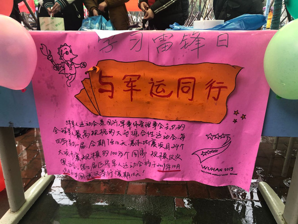 (通讯员刘文龙费诗婕)2019年3月5日为积极响应雷锋月的号召,践行“雷锋精神”,管理学院青年志愿者协会宣传了“最美夕阳”、“关爱白血病患儿”等一系列活动,同时也为即将到来的军运会做准备,宣传绿色生活,爱护绿色校园,提倡绿色出行。