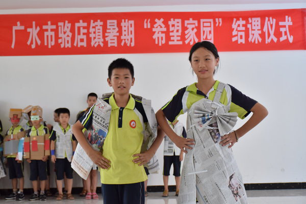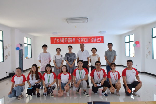 新闻中心讯(通讯员汪孝诚冷馥辰)“每个孩子,都应该被宠爱,他们是我们的未来”,嘹亮的歌声久久萦绕在广水市骆店镇社区居民委员会。7月26日上午8:30,bat365登录平台入口校团委的9名师生志愿者在这里结束了为期20天的“希望家园”暑期“三下乡”社会实践活动并举行了支教结课仪式。广水团市委副书记陈珍、汪晓曲,骆店镇团委副书记彭小霞、bat365登录平台入口“希望家园”活动指导老师冷馥辰、8名学生志愿者以及受支教的20多名小学生们及家长参加了本次活动。