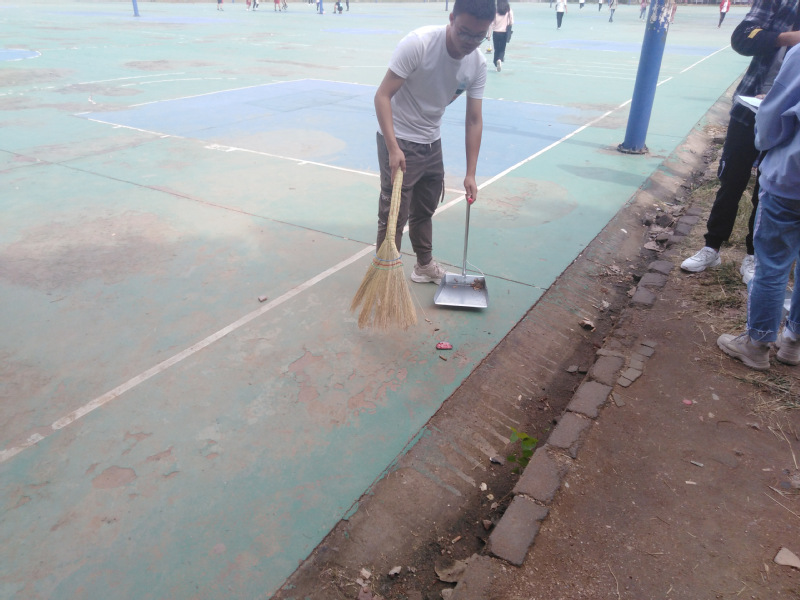 10月24日中午12点,校学生会在综合楼前对各院学生会进行点名签到,签到后由校学生会带领各学院学生会打扫相应区域。在集合现场,各种清洁工具摆放整齐。集合结束后,各院学生会到各自区域打扫卫生。学生会成员利用扫帚将路面垃圾清理干净后倒入垃圾桶,他们辛勤劳动的背影成了学校一道靓丽的风景线,他们用行动践行“绿色校园”工作,呈现给我们干净又整洁的校园环境。
