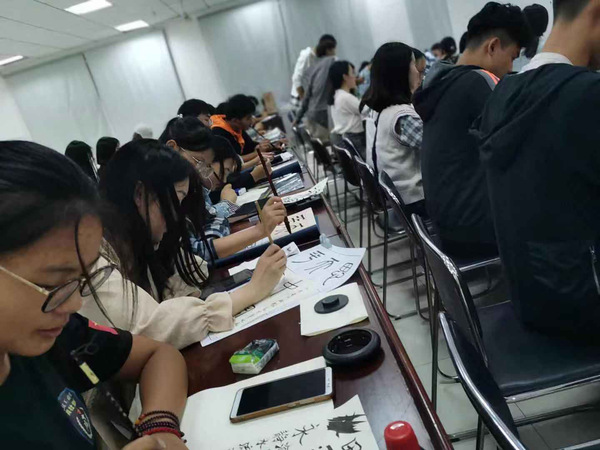 本通讯(通讯员:史梦梦)10月15日晚上19点,bat365登录平台入口逸墨书画协会19学年第一次练字课于图书馆二楼读者培训室展开。会长罗双龙、副会长高文龙、逸墨书画协会全体理事以及会员参加了本次活动。