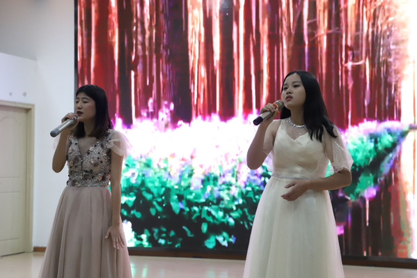 蓝色天空,以高挂着的月亮为背景,应用技术学院演唱的歌曲《月半小夜曲》婉转动听,凄楚动人的曲调和跌宕起伏的旋律直抵人心,使了全场观众沉浸其中。