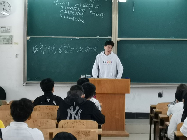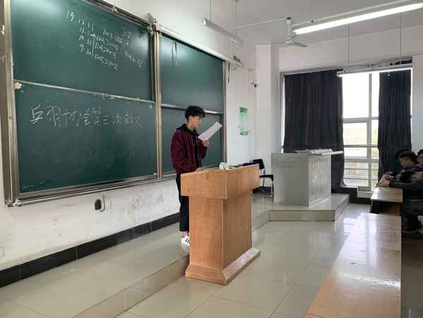 乒乓球部部长刘恒对乒乓球场地与每次到场人数进行了发言,指出其中存在的问题,也是为了让大家能够更好的参与乒乓球运动。
