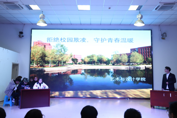 其中最让人印象深刻的莫过于游戏互动环节,通过听歌识曲不仅能获取“中华小曲库”,还能赢得精美礼品,现场参与人数众多因此调动了全场气氛。短暂的游戏环节结束后,艺术与设计学院带来舞台剧《拒绝校园欺凌,守护青春温暖》,由此反映出在欺凌面前要勇于反抗,直面正义。这部舞台剧极大的引起了同学们的共鸣,使现场一度沉寂。大学是一个色彩缤纷的大舞台,它拥有着无限的可能性。在这段充满自由的时光里,我们该如何规划自己的生活呢?由文法学院的毕柔带来演讲《大学发现你的可能性》圆满的结束了本场晚会。