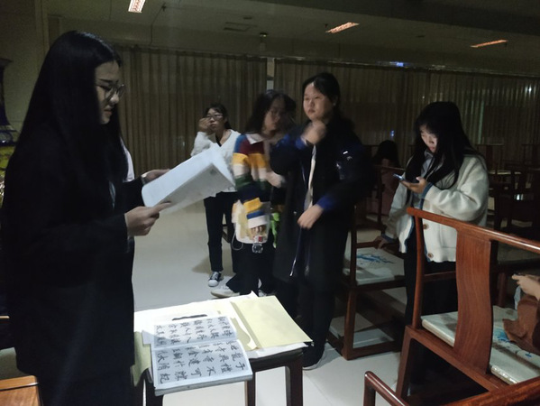 最后,主讲老师为大家讲解了书法的握笔方式,随后早已跃跃欲试的社员们踊跃参与了亲身的书法体验。这次书法小课在意犹未尽之中圆满结束。在本次小课之中,社员们对于书法这门传统艺术有了更加深刻的体会,更是被其中的魅力打动。