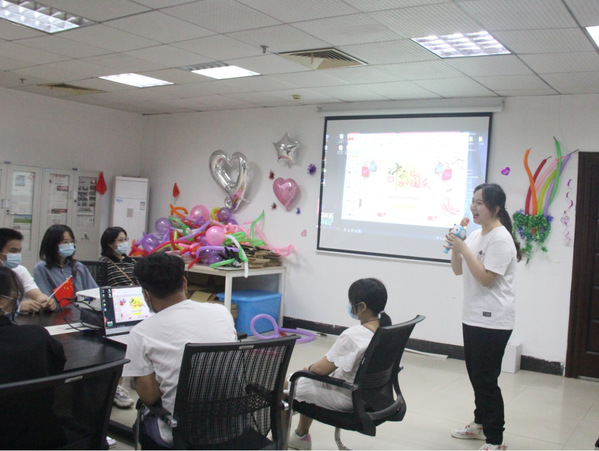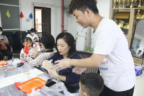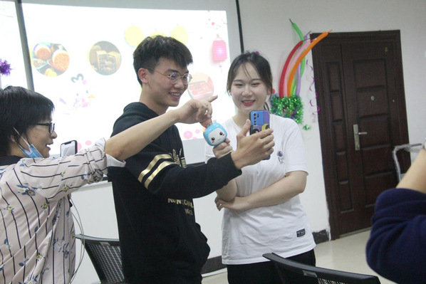活动第二项,由大三学长李翔翔、学姐张洁带领师生一起做月饼和中国结。活动现场氛围热烈,充满了欢声笑语,大家都积极地向学长学姐请教怎么做月饼和中国结,对于制作过程中遇到的困难,学长学姐充满了耐心,手把手地进行指导。随后,学生还与家长连线进行了视频互动,新生代表20电商本1 陈永康,20电商本3冯世锦,毕业生代表17信管本2 张金雨视频连线了家长,他们向自己的家人展示了亲手做的月饼、中国结以及手链,并表达了由衷的祝愿和对父母的感恩之情,现场参与同学给家长们中秋国庆祝福,家长同时也表示此次活动十分有意见。此次“饼饼节”活动全院各年级学生代表相聚一堂,最后由大一新生辅导员刘芳老师以及电子商务学院分团委书记舒娟老师现场给新生、老生发放月饼。“饼饼节”活动圆满结束。