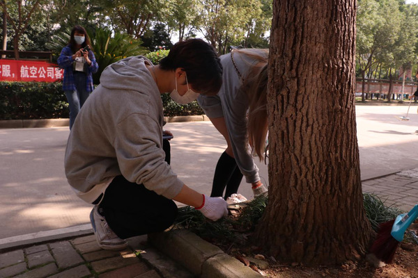 本次绿色园地工作积极响应了习近平主席的绿色发展理念,处理好人与自然和谐共生的问题和坚持保护环境的基本国策。在打扫中,同学们在整理明显的小垃圾的同时仍不放过一丝一毫细节,他们戴好手套细心整理草丛等处,做好最后的收工准备。