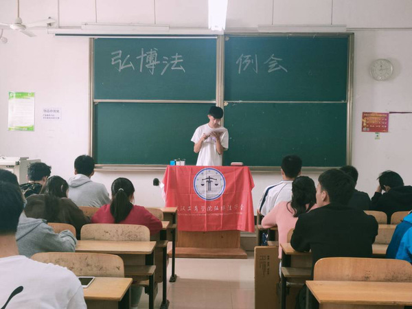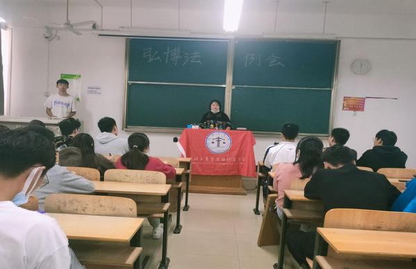 2020年10月22日中午12:10,弘博法学会在综合楼203教室召开了第十届弘博法学会第一次例会。此次例会由秘书部部长陈柏均主持,参加的人员有弘博法学会全体人员,开展此次例会的主要目的在于欢迎新部员的加入和让新部员了解各个部门的职能。