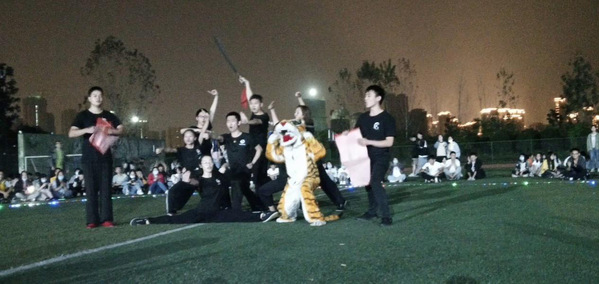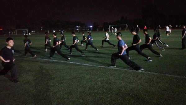招新活动正式开始前,社员们积极准备,一周四次训练,上下齐心、众志成城,认真刻苦地进行着招新表演开始前的准备阶段,用自己的实际行动,不懈努力地书写着属于自己大学4年里特别有意义的又一次集体活动。在训练中,大家挥洒汗水,交织成融水般的友谊与整齐划一的动作;沐浴秋风,大家积极进取,凝结成钻石般的毅力与武术人的集体荣誉感。蜜黄色的夜灯下,是一遍遍武术社员训练口号的呐喊,是一次次操练整齐舒展的动作,夜色正美,凉风吹着晨星,弯月钩着夜空,是青春、是信念、是武术人共同的希望相伴。泰戈尔有一句优美的名言:“只有经历地狱般的磨难,才有创造天堂的力量;只有流过血的手指,才能弹奏出时间的绝唱”,而在逊逸武术社,拥有的是脚肿了晒黑了依旧在坚持的社员们,练了又练嗓子喊哑的同学们,累的回到寝室倒头就睡的同志们,夜色渐浓依旧共同训练的队友们,正是这一群可爱的人们,才共同摘取了专属于逊逸武术的荣耀!