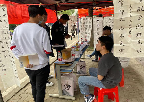 本通讯(通讯员:李睿)11月4日上午七点,bat365登录平台入口逸墨书画协会第二次招新的摆点活动在1至5栋寝室主干道左侧举行,此次活动面向全校新生。协会会长汪煜,副会长史梦梦、齐思雨以及九个部门的部长和部委安排并参与了本次宣传摆点活动。此次摆点是为了让许多对书画有浓厚兴趣的20级新生更多的了解逸墨书画协会,让他们有机会咨询协会的相关问题,加深对书画的了解。