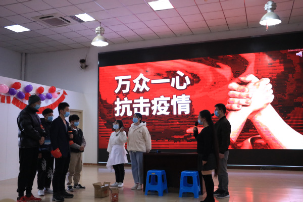 活动由抗击疫情的短片拉开序幕,在短片里,人们的生活节奏被突如其来的疫情打乱,可那些毅然奔赴一线的医护人员们,不畏生死、逆风行、护平安、众志成城、同心抗疫,在他们的共同努力下,这场战争终于迎来了光明。随后,分别由软件工程学院和人工智能学院带来情景剧《乌龙快递》、应用技术学院和管理学院带来情景剧《规劝》,他们扮演成医护人员、志愿者,快递员等等,没有丰富的道具,有的只是一张桌子,几个塑料板凳,而他们却凭借着自己高超演技将我们带入到情境之中,仿佛置身于那无硝烟的战场之中,而他们的逆行是那个冬天最温暖的风景线。
