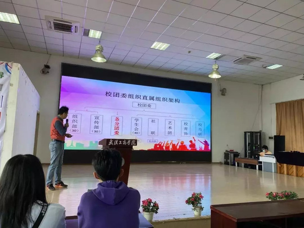 (图为校团委书记介绍组织架构)