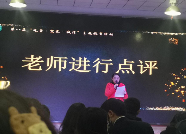 最后由薛佳老师上台对本次演讲比赛进行点评,薛老师对本次活动的举办给予了肯定。她引用了习近平主席的话来讲述抗疫期间,大学生们牢记新时代青年的使命,勇敢地站出来为抗击疫情贡献出自己的力量,并忠心地希望新时代的大学生们要从身边点点滴滴小事做起,为建设新时期社会主义新中国做好准备。我们相信:只要我们共同努力,坚定信念,一定能打赢这场疫情防控阻击战!