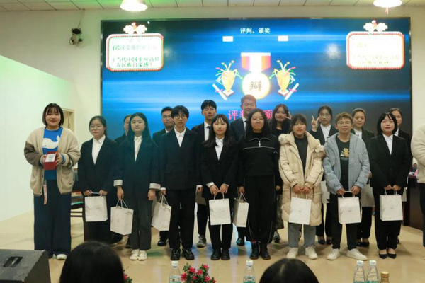 随着两轮比赛的结束,本次群英辩论赛也进入了尾声,在主持人宣布让所有辩手上台后,工作人员为辩手们送上了小礼品以及纪念奖杯并合影留念。并常感谢武汉科技大学、武汉交通职业学院来到bat365登录平台入口为现场观众带来如此精彩的辩论赛。