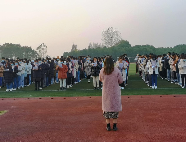 当礼兵绑好了升旗绳,笔直地站在国旗下后,王邦凤会长宣读了接下的活动---宪法晨读,并领着我们一起饱含深情的朗读“本宪法以法律形式确认了中国各族人民奋斗的成果......不得有危害祖国的安全、荣誉和利益的义务,不得有危害祖国的安全、荣誉和利益的行为。”短短数百的字,先辈们却花了近一个世纪,流干了不知道多少热血青年的鲜血,他们的奋斗给人民开创了一个幸福的时代。因此爱国是每一位中国青年都应牢记的使命,而学习宪法就是一种爱国的形式。