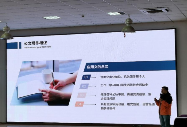 在本次团干培训中,邱玉添书记首先介绍了应用文的含义,让大家了解到底什么是应用文,什么时候会使用到应用文,如何使用应用文。并且详细地讲述了应用文的种类、主要功能及其写作要点,用日常生活中的实例深入浅出地进行讲解,让大家在以后的运用中更加得心应手,如鱼得水。