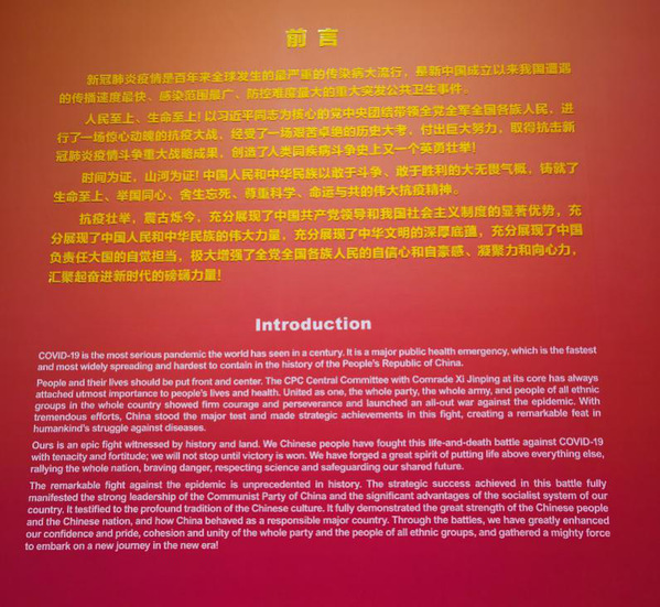 接下来是展厅内部:迎面而来的是对这次疫情的总结,我们可以看出这次疫情的严重性,但是在如此严重的情况下,我们中国人民,武汉人民没有选择退缩,而是迎难而上,抱着“人民至上,生命至上”的抱负进行了一场惊心动魄的抗疫大战。
