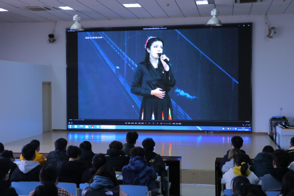 (图为同学们观看百生讲坛省决赛优秀主讲人视频)