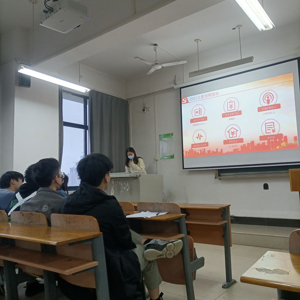 管理学院学生会讯(通讯员:顾清扬、魏雪艳 摄影:顾清扬)为深入学习“两会”精神,增强大学生的思想政治理论素养。3月14日晚6时,我校管理学院20财管本一于综合楼601教室开展深入贯彻学习“两会”精神的主题班会,本次活动由学习委员戴均茹同学主持,全体同学均到场。
