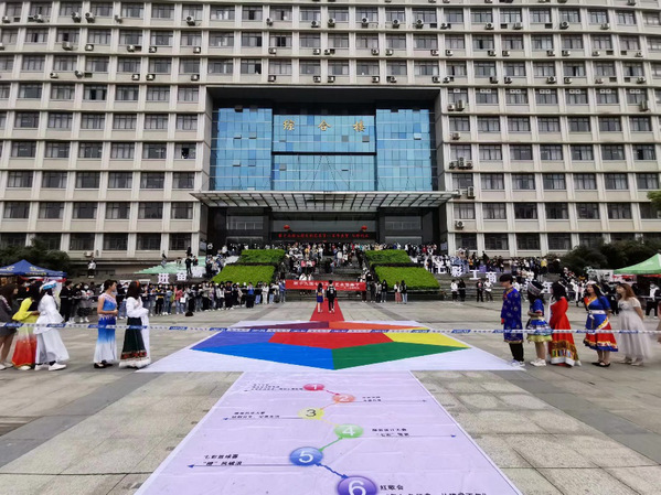 校学生会实践服务部讯(通讯员:李麒翱摄影:雷晓宇)我校为了深入学习贯彻十九大精神,落实立德树人根本任务,发展素质教育,培养德智体美全面发展的社会主义建设者和接班人,努力建设中华民族的共有精神家园,积极培育和践行社会主义核心价值观。为了实现校园第一课堂与第二课堂的融合互动,充分发挥促进我校学生综合素质全面提高。2020年4月8日,校学生会于综合楼门前、鸿德中路等五个区域,面向全校师生举行第十九届七彩文化艺术节开幕式。校学生会全体成员及各学院学生会成员组织协调本次活动。