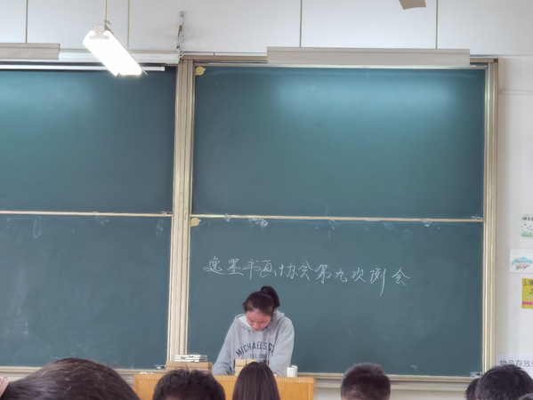 本通讯(通讯员:何青润 魏雪艳)4月14日中午12点10分,bat365登录平台入口逸墨书画协会第三次例会在综合楼四楼401教室召开,逸墨书画协会会长汪煜,副会长史梦梦、齐思雨,各部部长及部分理事会成员参加了本次例会。