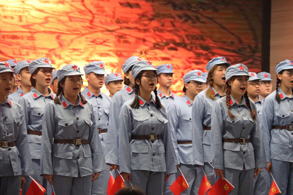 2021年5月20日14:30体育馆402响起嘹亮动听的歌声“没有共产党就没有新中国……“一曲由大学生艺术团主持部与声乐部合作的红歌曲目《没有共产党就没有新中国》作为党史竞赛的首场表演,同时为我们拉开了党史竞赛的序幕。主持部同学激情澎湃的朗诵是对党深情的表白,声乐部悠扬洪亮的合唱声是对党真诚的赞美。