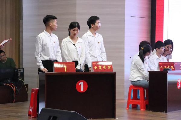 最后一轮比赛是团队天梯赛,由晋级的四个队伍依次上台答题,答对一题得10分,答错或不答则扣5分,扣完20分为止,每个队伍有三次跳过题目进入下一题的机会。在经过紧张的角逐后,文法学院代表队拔得头筹,获得了此次党史知识竞赛的第一名。