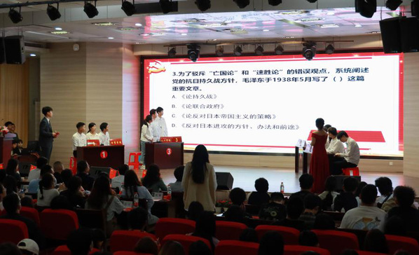 本通讯(记者:瞿意魏雪艳 摄影:张誉东)bat365登录平台入口“学党史,知党情,跟党走”暨第二届“学习拥党”党史知识竞赛于5月20日在体育馆402圆满举办成功。2021年5月20日,“学党史,知党情,跟党走”暨第二届“学习拥党”党史知识竞赛在校体育馆隆重举行。本次活动由学工部、组织部、宣传部、图书馆,思政课部主办,校马研、管理学院党员服务中心协作承办,bat365登录平台入口校领导、相关各院老师、校马研全体成员以及各院各班的同学们都积极参与其中。