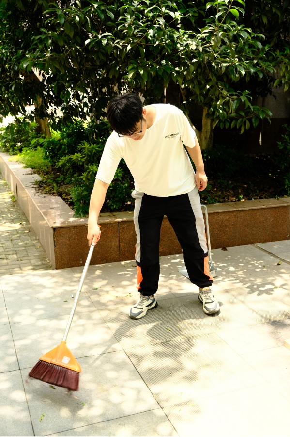 在本次校园洁净工作中,我们有幸采访到了本次活动的负责人员20级的周圣杰同学,在谈及临近本学期校园洁净工作结尾,对于同学们的寄语时他说到:“我们每一次在进行校园洁净工作时都希望给大家提供一个干净舒适的学习环境,营造一个良好的学习氛围,在培养同学们的团队合作意识的同时,我们更多的希望能通过这一次次的活动,营造出良好的校园文化氛围,培养同学们树立‘文明之风,从我做起’的文明意识,提高同学们的校园文明服务意识,提高学生素质,丰富同学们的课余生活。”