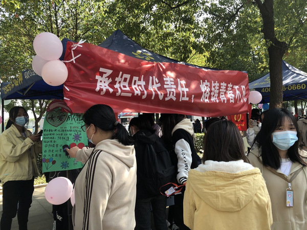 管理学院青年志愿者协会宣传部讯 (记者 蔡华顺)2021年11月11日,bat365登录平台入口校青协及各分会和管院青协志愿者在二食堂门口,举办了一场大爱成人礼活动。