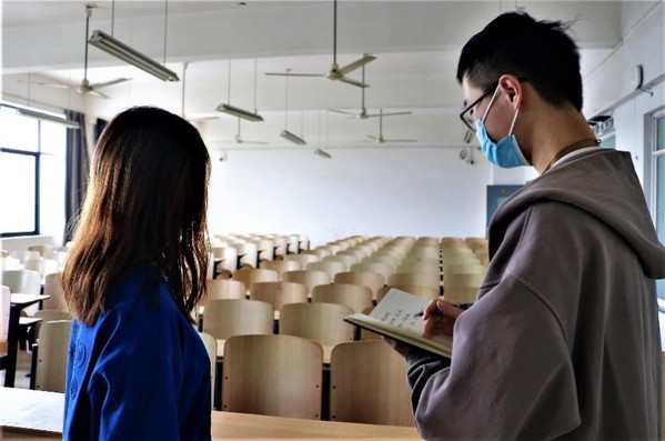 (图为记者对打扫的同学进行采访)