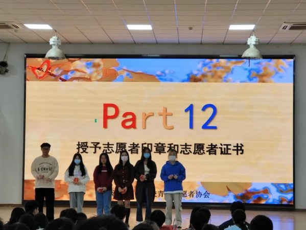 大会第四项,各分会介绍和代表发言,表达了自己的感受和对未来青协发展的一些看法,同时让新部委更加的了解了青协。大会第五项,秘书处宣读条例及授予志愿者印章和志愿者证书。 除了志愿服务外,协会内部的纪律也同样重要,秘书处在成立大会上宣读条例,让各位新加入的成员了解青协的记录。在此之后,各位部长授予部委们志愿者印章和志愿者证书,也意味着他们正式成为青协这个温暖大家庭的一员。